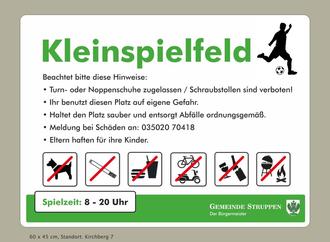 bekanntermaßen konnten wir vor einiger Zeit die Kleinspielfeldanlage in Betrieb nehmen und für die Öffentlichkeit freigeben. Wir alle sind an dieser Stelle glücklich darüber, dass insbesondere den Kindern und der Jugend aus dem Ort so ein Platz für sportliche Aktivität geschaffen werden konnte. Der finanzielle Aufwand für den Platz war für die Gemeinde selbst trotz Fördermitteln enorm hoch. Damit unsere Kinder und Jugend noch lange von dieser schönen Anlage partizipieren können, bitten wir daher um sorgsames Umgehen auf dem und um das Gelände.