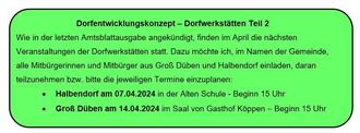Werte Mitbürgerinnen und Mitbürger aus Groß Düben und Halbendorf,