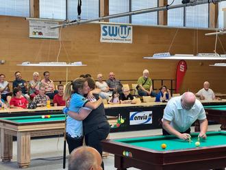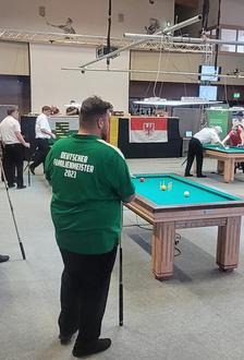Nach kurzen fünf Monaten Vorbereitungszeit war es Mitte Juni so weit, die besten Kegelbillardspieler kamen nach Trebendorf um die Deutschen Meister zu ermitteln. Als dann die Sporthalle in eine Wettkampfarena umgewandelt war und die vier Tische in der Mitte standen, hat es mir als passionierten Billardspieler schon ein wenig in den Fingern gejuckt.