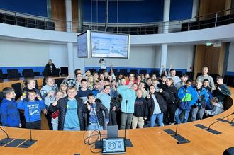Am 7. Oktober 2025 machten sich die Schülerinnen und Schüler der Klasse 6 b der Gubener Friedensschule, die am 72. Europäischen Wettbewerb teilgenommen hatten, auf Einladung des Europe Direct Zentrums Guben auf den Weg nach Berlin. Begleitet wurden sie von der Klasse 5 b.