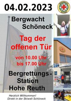 Die Bergwacht Schöneck e. V. lädt am Samstag, 04.02.2023 von 10:00 bis ca. 17:00 Uhr zum Tag der offenen Tür herzlich ein. Erleben Sie einen spannenden Tag direkt in der Skiwelt Schöneck an der Bergwachtstation. Egal wie das Wetter ist – wir freuen uns auf Ihr Kommen.