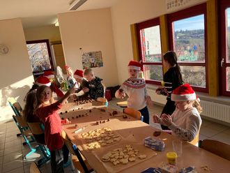 Am letzten Tag vor den Ferien wurde die Weihnachtsfeier im Hort erstmalig gemeinsam begangen. Im Speiseraum kamen alle zusammen, um die tollen Beiträge ihrer Mitschüler und Mitschülerinnen anzuschauen. Neun Kinder aus der Gruppe von Frau Gerbeth hatten sich ganz allein ein humorvolles Theaterstück ausgedacht und einstudiert, welches sogar von Geigen- und Flötenmusik begleitet wurde. Winston spielte auf seinem Akkordeon und das Mädchentrio Mathilda, Hedy und Riva sangen zusammen verschiedene Weihnachtslieder. Von einem Glöckchenspiel begleitet, trug André „Jingle Bells“ vor. Sogar eine kleine Tanzgruppe präsentierte ihre Choreographie zu dem Lied „Feliz Navidad“. Natürlich gab es für alle Akteure tosenden Applaus. Zum Schluss haben alle gemeinsam das „Zuckermännle-Lied“ gesungen und kamen spätestens dann richtig in Weihnachtsstimmung. Für die Verpflegung mit Plätzchen sorgten im Vorfeld die Kinder des Hortschülerrats, die fleißig für alle gebacken haben. Natürlich dufte auch der Kinderpunsch nicht fehlen. Im Anschluss wurden die Kinder in ihren Gruppen mit neuem Spielzeug beschert. Alles wurde begutachtet und ausprobiert und die Freude war groß. Jetzt konnten die Weihnachtsferien starten.