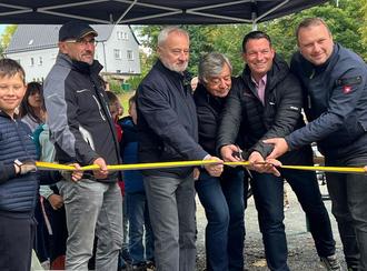Vertreter der Baufirmen, dem Ingenieurbüro und Stadtverwaltung bei der Eröffnung.