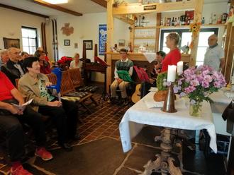 Der eine nennt die Knollen, die im Mittelpunkt unseres diesjährigen Erntedankfestes standen, Kartoffeln, für den anderen sind es Erdäpfel. Wie dem auch sei, seit Jahrhunderten sind sie das wichtigste Grundnahrungsmittel im Vogtland. Pfarrer Seltmann schuf eigens für den Erntedankgottesdienst, den wir diesmal in der bis auf den letzten Platz gefüllten Festscheune des Ferienhofes Wilfert feiern konnten, ein Kartoffellied, in das die ganze Gemeinde fröhlich mit einstimmte. Seine Predigt rund um die Kartoffel trug Frau Seltmann vor. Für die Musik sorgten die Gruppe „Minstrel“ und Jörg Degen.