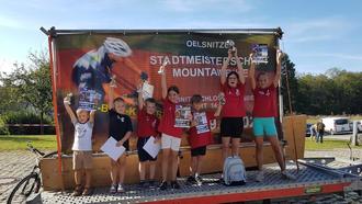 Der dritte Wettkampf in Oelsnitz zur Stadtmeisterschaft von Laufrad bis E-Bike – rund um die Burg – war wieder sehr gut organisiert. Unsere jüngsten Starter Raphael Burkhard und Andre Hähnel mussten zwei Runden um die Burg Voigtsberg fahren und konnten sich mit Platz 2 für Andre und Platz 3 für Raphael im großen Starterfeld gut behaupten. In diesem Starterfeld nahm auch Leni Wild, mit ihrem neuen Fahrrad, an ihrem ersten Wettkampf teil und belohnte sich mit Platz 2. Dann durften die schon wettkampferprobten Jungs Felix Rahmig und Leon Heinrich an den Start. Beide waren dieses Jahr in diesem Starterfeld die jüngsten, kämpften sich aber gut durch die Runden. Felix fiel durch einen Sturz leider auf Platz 5 zurück und Leon belegte den undankbaren 4. Platz. Nach den kleinen Runden um die Burg wurde nun für die größeren Kids und Erwachsenen der Parcours gewechselt und es hieß nun eine erschwerte Runde mit Anstieg und eine nicht einfache Abfahrt zu absolvieren. Hier starteten gleich zwei Altersklassen gleichzeitig und es gab beim Start ein ganz schönes Gedränge. Nach der ersten Runde sah man aber gleich, wer mit seinem Rad umgehen konnte, denn das Feld zog sich ganz schön auseinander. Die beiden Mädel`s Julie Burkhard und Lina Jäkel, in unterschiedlichen Altersklassen unterwegs, zogen zusammen ihre Runden und konnten sich gegenseitig motivieren. Sie freuten sich am Ende jeweils auf dem Siegertreppchen ganz oben zu stehen. Seit einigen Jahren nehmen auch einige Männer und Frauen vom OVV an der Inklusionsrunde rund um die Burg teil. Hier wollte es sich Annika Piontkowski dieses Jahr nicht nehmen lassen, an dieser Runde teilzunehmen. Sie konnte sich im Feld gut involvieren, zog ihre Runden mit eisernem Willen und stand am Ende auf Platz 2. Alle freuten sich am Ende über die tollen Pokale und Urkunden.