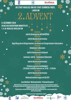 Geboten wird ein buntes weihnachtliches Programm von Akteuren aus Kraslice und Schöneck.