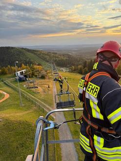 Alarmierung zu Personen in Not in der Skiwelt Schöneck. Der Sessellift funktionierte nicht mehr und somit galt es die 29 Personen, welche sich in den Sesseln befanden, zu retten. Glücklicherweise handelte es sich hierbei um eine Übung. Ziel hierbei war unter anderem, das Zusammenspiel der verschiedenen Rettungsorganisationen bei einem solchen Einsatzszenario zu üben. Neben den Ortsfeuerwehren Schöneck, Arnoldsgrün, Gunzen und Schilbach waren auch die Berufsfeuerwehren Plauen und Zwickau, die Freiwillige Feuerwehr Schreiersgrün, die Bergwacht Schöneck, Bergwacht Carlsfeld und die Kameraden der Bergwacht Horska Sluzba, sowie das THW Reichenbach und DRK Katastrophenschutz Einsatzzug aus Plauen beteiligt. Die Übung wurde von allen Teilnehmenden als sehr gelungen empfunden und zeigte, wie gut die Hand-in-Hand Arbeit der verschiedenen Organisationen funktioniert. Im Anschluss hieß es Kräfte auftanken. Hierzu wurden im Gerätehaus Schöneck warme Speisen und Getränke gereicht. Ein herzlicher Dank an alle Beteiligten für Ihre Mitwirkung und Teilnahme.