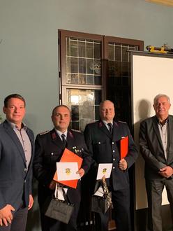 v. l. Bürgermeister Andy Anders, Kamerad Maik Posselt, Kamerad Wolfgang Richter, Mario Schuh, Sparkasse Vogtland