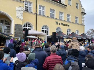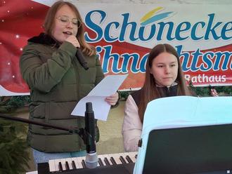 Alle Vorbereitungsarbeiten waren abgeschlossen, alle Verkaufshütten in weihnachtliches Flair gehüllt – nun konnte der Schönecker Weihnachtsmarkt am Rathaus starten. Sogleich zog der Duft von gebrannten Mandeln, Glühwein und anderen Leckereien die Besucher magisch an. Bürgermeister Andy Anders begrüßte die Gäste kurz und wünschte allen einen schönen Abend.
