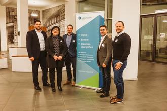 Bürgermeister Andy Anders kam zum Neujahrsempfang der SWS digital e. V. mit Landrat Thomas Hennig, Bettina Groth, stellvertretende Vorstandsvorsitzende, Sören Voigt, Landtagsabgeordneter sowie mit Michael Scheibner, CEO GK Software SE ins Gespräch.