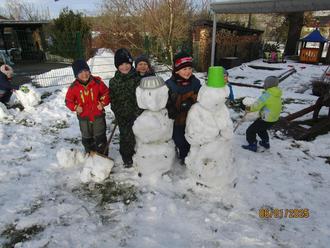 ... singt es bei uns immer wieder und manchmal werden wir erhört. Zur großen Freude aller Kinder hatte es im Januar endlich geschneit. Ruck zuck wurden die Schneeschieber, -schaufeln und Poporutscher raus geholt und der Garten bearbeitet. Nachdem eine Schneemauer gebaut, die Rutschbahn angelegt und glatt gefahren wurde, entstanden mit viel Elan und Kreativität auch noch eine große Schneemannfamilie.