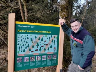 Eckis Naturlehrpfad – ein beliebtes Ausflugsziel in Schöneck, hat wieder neue Elemente vorzuweisen. Über die Wintermonate wurde neben einer neuen Schautafel zum Thema Zeichensprache im Wald, die Spuren und Fährten einiger tierischer Waldbewohner anschaulich dargestellt. Genauso dürfen Besucher des Pfades nun auch an einer weiteren Infoklappe rätseln, welche Spuren die Tiere im Wald auf der Futtersuche noch hinterlassen. Gebaut wurden die Elemente von der Zimmerei Herrmann aus Mühlleithen. Ungefähr bei der Hälfte der 2,6 km langen Naturlehrpfadrunde kann im rustikalen Grünen Klassenzimmer des Forstbezirkes Pause gemacht werden. Derzeit laufen weitere Planungsgespräche über die Nutzung des Klassenzimmers mit Schulen, welche ihren Unterricht ins Freie verlegen und dabei auch mehr über die Natur und Forstwirtschaft, welche vor der Haustür liegt, kennenlernen wollen. Der Lehrpfad eignet sich sehr für geführte Touren mit dem Sachsenforst und ist zu einem richtigen Waldbesucher-Hotspot geworden. Im Jahr 2024 haben ca. 10 waldpädagogische Führungen im Meilergebiet mit Wald-Quiz, Pflanzenkunde, Berufsorientierung und Geländespiel neben einer Informationsveranstaltung für Waldbesitzer stattgefunden.