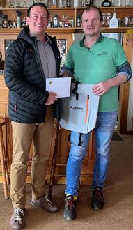 Bürgermeister Andy Anders überbrachte Glückwünsche zum 20-jährigen Betriebsjubiläum seiner Kfz-Werkstatt an Roberto Behrendt im Ortsteil Eschenbach.