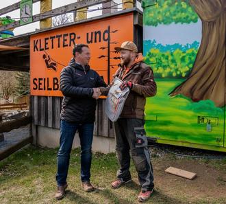 Pünktlich zum Start in die diesjähige Saison gratulierte Bürgermeister Andy Anders zum 10-jährigen Jubiläum.