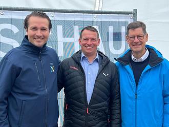 Andy Anders mit Oberbürgermeister Adrian Sonder (links) und dessen Vorgänger Julian Oswald