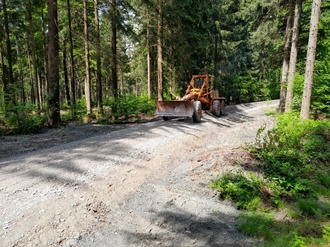 Damit der Weg stabil und tragfähig auch in den nächsten Jahrzehnten ist, wird eine neue Tragschicht auf 500 m aufgezogen. Diese besteht ausschließlich aus regionalem Natursteinmaterial. Ebenfalls werden teils neue Durchlässe verlegt, um eine ausreichende Wasserführung zu gewährleisten. Am Ende wird noch ein besonders feines Material (max. 11 mm Korngröße) aufgezogen. Nach Fertigstellung aller Arbeiten wird der Weg für 6 Wochen gesperrt um eine Setzung des eigebauten Materiales zu gewährleisten.