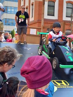 Auch die Teens der Bergwacht zeigten, was sie bereits gelernt haben und wie einfach es ist, Erste Hilfe zu leisten. Die Akrobatikmädels vom SV Neptun Markneukirchen zeigten am Nachmittag ihr Können und freuten sich, endlich wieder öfters vor Publikum aufzutreten. Natürlich fieberten viele dem Höhepunkt am Nachmittag entgegen – dem 17. Seifenkistenrennen. Hier wurden in den verschiedenen Altersklassen wieder die schnellsten Fahrer ermittelt. Zahlreiche Starter vom Bobbycar bis zu den Erwachsenen hatten sich angemeldet und gingen auf die Rennstrecke in der Schillerstraße. Alle Starter wurden vom Publikum kräftig angefeuert.