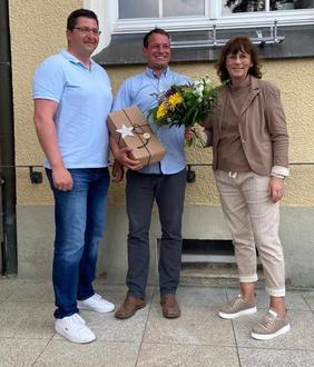 Glückwünsche an den neu gewählten Bürgermeister überbrachten am Wahlabend Landrat Thomas Hennig und die scheidende Bürgermeisterin Isa Suplie.