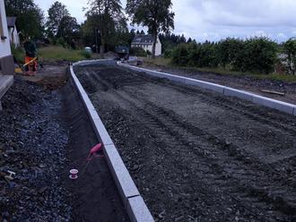 Der Bauablauf liegt im Zeitplan. Inzwischen konnten die Borden gesetzt werden und die Vorbereitungen für die Asphaltarbeiten fast abgeschlossen werden.