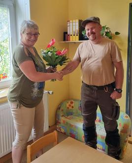 Herzliche Glückwünsche zum 25-jährigen Dienstjubiläum von Frau Andrea Zöphel überbrachte Bauhofleiter Marcus Schubert in Vertretung von Bürgermeister Heiko Spranger.