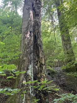 In einem ersten Schritt wurden die partiell sich in einem sehr schlechten Zustand, teilweise schon gebrochenen Buchen mit dem Revierförster begutachtet und entsprechende Sicherungsmaßnahmen abgestimmt und eingeleitet.