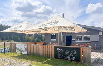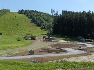 Wer sich den Baufortschritt einmal aus der Nähe anschauen möchte, kann dies gleich mit einem Besuch im Hüttenwirt verbinden. Dieser hat von Mittwoch bis Sonntag von 11:00 bis 17:30 Uhr geöffnet und bietet eine kleine Speisekarte mit Snacks, Eis und gekühlten Getränke an. Auf der Sonnenterrasse lässt es sich super entspannen, während die Bagger ihre Arbeit verrichten und die Biker den Hang hinunter sausen.