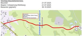 Start Baumaßnahme Mühlberg Vollsperrung ab 21. Juli 2025