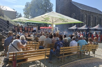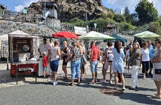 Bei allerbestem Sommerwetter konnten wir auch in diesem Jahr unsere Kirmes feiern. Auftakt bildete der Festgottesdienst in der St. Georgs Kirche. Pfarrer Albert und Bürgermeister Andy Anders eröffneten anschließend gemeinsam die diesjährige Kirmes. Vereine, Kindertagesstätte und Händler aus Schöneck sowie der Umgebung lockten die Besucher mit vielfältigen Angeboten. Ob das umfangreiche kulinarische Angebot, Dekoartikel, frisch geerntetes Gemüse, Honig oder auch verschiedenen Mitmachaktionen, für jeden war etwas dabei. Zum musikalischen Frühschoppen spielten die Böhmischen Vogtländer auf. Am Nachmittag standen dann die „Brasssocks“ aus Klingenthal auf der Bühne und viele Besucher lauschten im Schatten den beswingten Rhythmen der Band. Voll auf Ihre Kosten kamen natürlich auch die kleinen Besucher unserer Kirmes, ob auf der Hüpfburg, der Kletterwand, beim Kinderschminken, Ballonmodellage mit Clown Martin, Bastelangeboten, Seifenblasenparty oder ein paar Probeaufschlägen am Volleyballnetz. Heißbegehrter Anlaufpunkt war auch das Eismobil an diesem Nachmittag.