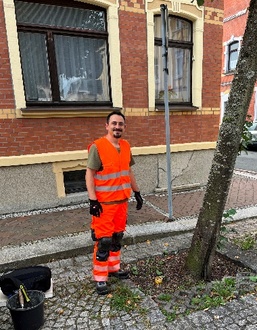 Dem ein oder anderen ist vielleicht seit dem 2. September aufgefallen, dass ein junger Herr in oranger Arbeitsbekleidung die Baumscheiben gereinigt und die Wassertriebe unserer Straßenbäume entfernt hat. Es handelt sich hierbei um keine Strafarbeit, ganz im Gegenteil, sein Name ist Hussein er stammt aus dem Iran und macht das freiwillig! Er ist Teilnehmer an einer AGH-Maßnahme und wird unseren Bauhof bei zahlreichen kleinen und großen Arbeiten voraussichtlich für das nächste halbe Jahr unterstützen. Er ist seit 8 Monaten in Deutschland und gibt sich große Mühe, verständlich Deutsch zu sprechen, also scheuen Sie sich auch nicht, mit ihm das ein oder andere Wort zu wechseln oder einen Dank an ihn zu richten.