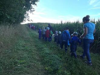 Ein weiteres Ereignis für Klein und Groß war das Ablesen frischer Kartoffeln direkt vom Feld, welche an einem anderen Tag zu köstlichen Ofenkartoffeln oder Pellkartoffeln mit Kräuterquark und Sour Creme von allen Kindern zubereitet und mittags verspeist wurden. Ebenfalls wurde mitgebrachtes Obst aus den Erntekörbchen zu Obstsalat verarbeitet.