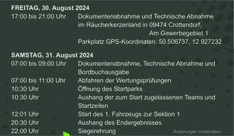 Bitte beachten Sie während der Veranstaltung die Hinweise und Anweisungen der Streckenposten. Bitte achten Sie auf Ihre Kinder und lassen sie sie nicht unbeaufsichtigt während der Rallye.