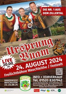 | 20.00 Uhr | Ursprung Buam – die Nr. 1 aus dem Zillertal |