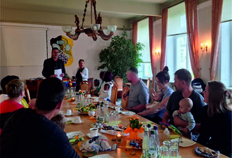 Begrüßung der jungen Familien durch Bürgermeister Mirko Geißler im Rathaus.