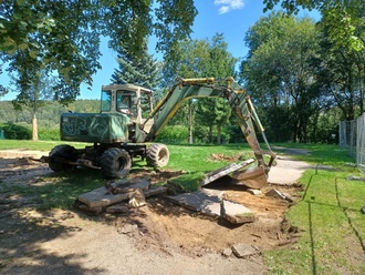 Am Mittwoch, dem 31.07.2024 starteten bei uns im Garten der Kita „Klosterzwerge“ große Umbauarbeiten. Mit staunenden Augen beobachteten wir, wie unser großes Klettergerüst abgebaut wurde. Außerdem wurden alle Gehwegplatten heraus gebaggert und ein großer Teil des Gartens wurde abgesperrt.