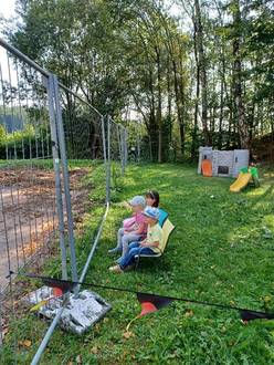 Wir beobachten nun jeden Tag die verschiedenen Baufahrzeuge und die Veränderungen in unserem Garten.