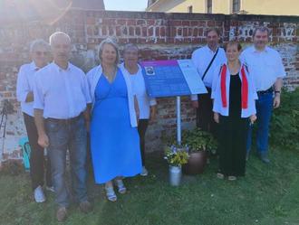 Mitglieder der Museumsgruppe vor den Geburtshaus von Marie Simon v.l. Gisela Schreier, André Uebe, Simone Uebe, Eva Günther, Mirko Gutschick Ursula Hörig und Mario Uebe.