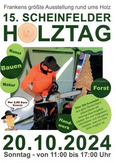 Am 20.10.2024 dreht sich in der fränkischen Stadt Scheinfeld wieder alles um Holz. Die öffentliche Leistungsschau rund um die Themen Holz und Forst findet in diesem Jahr bereits zum 15. Mal statt. Längst hat sich die Veranstaltung zur größten Präsentation dieser Art in Bayern etabliert. Gezeigt wird alles von der großen Holzerntemaschine bis zur filigranen Kunst aus Holz, vom kleinen Baumsteckling bis zum fertigen Möbelstück.