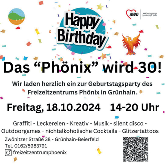 Am 18. Oktober 2024 feiert das Freizeitzentrum Phönix seinen 30. Geburtstag und lädt alle Interessierten herzlich ein.