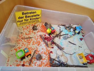 Die Glühwürmchen eröffneten in einer großen Box ihre eigene „Baustelle“. Hier konnten die kleinen „Bauarbeiter“ selbst baggern und bauen.