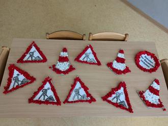 Die Bärchenkinder gestalteten Verkehrsschilder und Pylonen mit Krepppapierkugeln. Außerdem bearbeiteten sie verschiedene Arbeitsblätter.