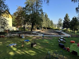 Die Wege sind auch schon fertig und das Gras wurde eingesät. Nun warten wir auf unsere Spielgeräte, die in drei Wochen aufgebaut werden.