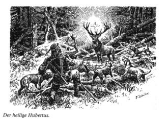 Aber bei einer Hetzjagd auf einen Hirsch passierte es. Als er den Hirsch erlegen wollte, sah er das Kreuz zwischen den Geweihstangen.