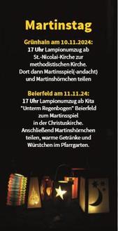 | 17.00 Uhr | Lampionumzug zur Martinsandacht in die ev.-meth. Kirche |