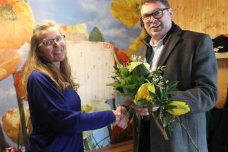 Mit einem Blumenstrauß dankte Bürgermeister Mirko Geißler der hilfsbereiten Nachbarin.