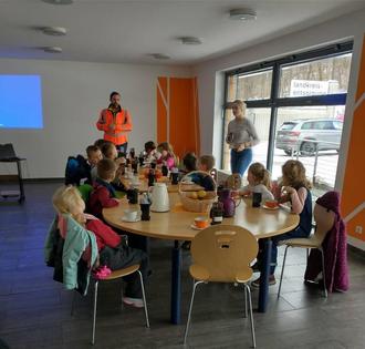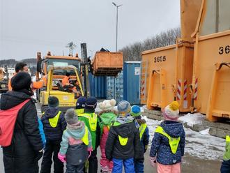 Nachdem die Kinder mit dem Bus nach Schwarzenberg gefahren sind, wurden sie herzlich begrüßt und auf den Hof geführt. Staunend sahen die Vorschüler den vielen Müll und die Container.