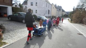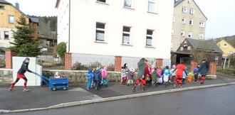 Gemeinsam ging es mit lautem „Klingelingeling und Bum-Bum-Bum“ zusammen im Dorf herum.