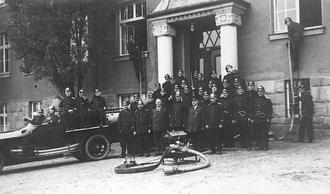 1930 - Kameraden der Beierfelder Feuerwehr vor der Schule.