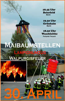 | Maibaumstellen und Walpurgisfeuer | Beierfeld, Grünhain, Waschleithe | |