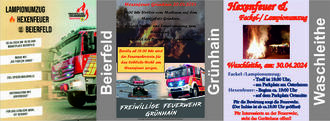 Dass die traditionellen Großfeuer in den Stadtteilen am 30. April 2024 dennoch stattfinden können, ist den örtlichen Feuerwehren und den Feuerwehrvereinen zu verdanken. Neben der brandschutztechnischen Absicherung der Feuer und der Bewirtung der Gäste, werden die Ausgaben für das kulturelle Rahmenprogramm (musikalische Darbietungen, Lampionumzug) selbst übernommen.