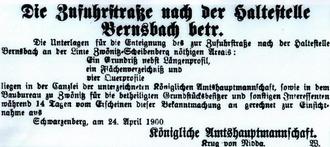 Am Sonnabend, dem 28. April 1900 fand die technische Abnahme der neuerbauten sächsischen Staatsbahnlinie Zwönitz - Scheibenberg statt. Das Amtsblatt „Erzgebirgischer Volksfreund“ berichtet wie folgt: